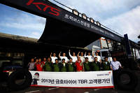 <금호타이어>가 [업계최초]로 18PR의 고강도타이어 [KRA50]을 개발해냈다.4일 <금호타이어>는 개발한 타이어를에 대한 시승평가를 받기 위해[트럭버스용 타이어](이하 TBR) 고객평가단 발대식을 가졌다고 밝혔다.[TBR 타이어 고객평가단]에는
