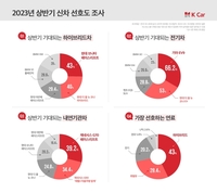 케이카가 상반기 전기차 선호도가 하락했다는 조사 결과를 27일 발표했다.전국 30~49세 남·여 500명을 대상으로 한 상반기 출시 예정 신차 선호도 조사 결과 올 상반기 ‘하이브리드차’ 선호도는 전년 하반기 대비 8%p 증가한 43%로 가장 높았다. 반면 ‘