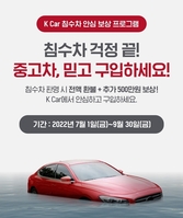 직영중고차 플랫폼 기업 K Car(케이카)가 ‘침수차 안심 보상 프로그램’을 9월 30일까지 연장 운영하고 추가 보상금을 100만원에서 500만원으로 상향한다고 10일 밝혔다. 최근 폭우로 인한 침수차 발생에 따라 중고차 구매를 우려하는 소비자들을 위한 조치다