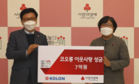 코오롱그룹이 11일 서울사회복지공동모금회에 ‘희망나눔 성금’ 7억 원을 전달했다. 코오롱은 2008년부터 14년째 사회복지공동모금회에 성금을 기부해오고 있다.전달식은 서울 중구 사랑의열매 회관에서 열렸다. 행사는 코로나19 확산에 따른 사회적 거리두기로 김승일 부사장,