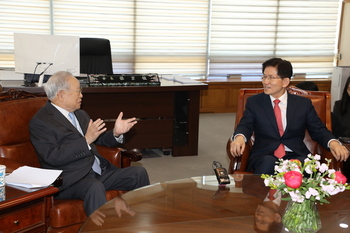 한국경영자총협회는 제21대 대통령선거에 출마하는 김문수 전 고용노동부 장관이 15일 서울 마포구 경총에서 손경식 회장과 차담회를 가졌다고 밝혔다.
