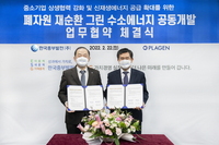한국중부발전은 지난 22일 플라젠과 '폐자원 재순환 그린 수소에너지 신사업 공동개발'을 위한 업무협약을 체결했다고 23일 밝혔다. 이번 협약은 중소기업과의 상생협력을 강화하고 신재생에너지 공급을 확대하기 위해 이뤄졌으며 폐플라스틱 등을 자원화해 수소를 개발하고