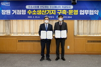 한국가스공사(사장 채희봉)는 23일 창원시와 '거점형 수소생산기지 구축·운영에 관한 업무협약'을 체결했다고 밝혔다. 창원시청에서 열린 이날 행사에는 성영규 가스공사 안전기술부사장과 허성무 창원시장 등 관계자 10여명이 참석했다. 총 사업비 414억원이 투입되는