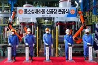 포스코케미칼이 스마트 내화물 공장을 신설하고 원가경쟁력과 생산성을 높여 사업경쟁력을 강화한다.6일 포스코케미칼에 따르면 최근 경북 포항시 소재 내화물 7공장에서 민경준 사장과 시공사인 포스코플랜텍 조정우 사장 등이 참석한 가운데 신공장 준공식을 열었다.지난해 492억원