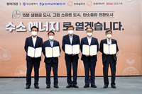 한국남부발전(사장 이승우)이 부산지역을 수소경제 성장기반을 통한 탄소중립도시로 전환하는데 팔을 걷어 부쳤다.남부발전은 15일 부산시청 대회의실에서 부산시, 한화에너지, 한화솔루션, BNK금융그룹과 ‘탄소중립 전환도시 실현을 위한 수소경제 성장기반 조성 업무협약(MOU)