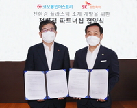 코오롱인더스트리가 SK종합화학과 손잡고 친환경 플라스틱 시장 공략에 나선다.8일 코오롱에 따르면 전날 코오롱인더스트리는 SK종합화학과 생분해성 플라스틱인 PBAT(Poly Butylene Adipate-co-Terephthalate) 시장 진출 및 선점을 위한 전략적