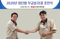 SM그룹 티케이케미칼 노사가 2020년도 임금 및 단체협약을 동결하기로 합의했다.14일 SM그룹에 따르면 양측 대표는 코로나19 확산으로 어려운 국내외 환경을 노사가 슬기롭게 극복하자는 데 뜻을 모았다. 앞서 노사의 무교섭 타결안은 8~9일 조합원 찬반투표를 통해 가결