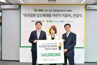 에쓰오일은 18일 서울 마포구 본사에서 저소득가정 담도폐쇄증 어린이 치료비 1억4500만원을 한국사회복지협의회에 전달했다고 밝혔다. 이 기부금은 에쓰오일 임직원 1800여명이 매월 급여에서 1만원 미만의 우수리를 모다 조성한 기금이다.담도폐쇄증은 신생아 희귀질환으로,