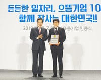 SKC의 반도체 소재 전문 자회사 SKC 솔믹스는 고용노동부와 일자리위원회가 세종시 세종컨벤션센터에서 개최한 ‘2019 대한민국 일자리 으뜸 기업 인증식’에서 이낙연 국무총리로부터 대통령 인증패를 받았다고 26일 밝혔다. 이 인증패는 일자리를 늘리거나 질을 앞