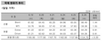 6월 세째 주 에틸렌 가격이 4주 연속 하락세를 이어갔다. 같은 기간 합성수지는 혼조, 합섬원료는 상승세를 보였다.25일 석유화학업계에 따르면 지난주 에틸렌은 전주 대비 1.3% 내린 t당 740달러, 원료인 나프타(Naphtha)는 전주 대비 10.2% 오른 t당 5