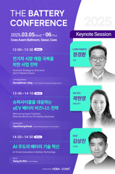 K-배터리 3사가 내달 5일부터 6일부터 이틀 동안 서울 코엑스에서 진행되는 '더배터리컨퍼런스 2025'에서 캐즘 극복 방안을 설명한다.27일 한국배터리산업협회에 따르면 3사 임원이 동시에 연사로 참여해 ‘캐즘 극복을 위한 사업 전략’을 주제로 강연을 펼칠 예정이다.정