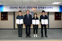 재단법인 천만장학회가 삼천리그룹 여의도 사옥에서 제33기 장학증서 수여식을 개최하고 올해의 장학생 100명에게 6억원을 전달했다고 19일 밝혔다.장학회는 선정된 고등학생 30명과 대학생 70명에게 장학증서와 함께 장학금을 후원할 예정이다.30년 넘게 장학금을 지원해온