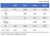 배터리 시장에서 퇴출 위기까지 몰렸던 원통형 리튬이온 배터리가 최근 들어 다시 부각되고 있다.전기자전거, 골프카트 등 대형 제품의 사용이 확대되며 원통형 배터리 수요 확대의 견인차 역할을 톡톡히 하고 있기 때문이다.16일 시장 조사기관 B3에 따르면 원통형 배터리 수요