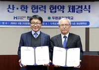 현대제철이 두원공과대학교와 우수 인력 양성을 위한 산학협력 협약을 맺었다고 25일 밝혔다.이날 두원공대에서 열린 협약식에는 김학용 안성시 국회의원(환경노동위원회위원장), 현대제철 안동일 사장, 두원공대 조병섭 총장직무대행 등 관계자들이 참석한 가운데 현대제철이 향후 5