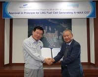 삼성중공업이 온실가스 배출규제에 대응할 수 있는 연료전지 적용 원유운반선을 세계 최초로 개발했다.삼성중공업은 노르웨이 독일 선급인 DNV GL사로부터 '연료전지(Fuel Cell) 적용 아프라막스급 원유운반선'에 대한 기본승인을 획득했다고 26일 밝혔다.선급 기본승인은