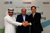 현대중공업이 사우디 기업들과 합작해 엔진 라이선싱 사업에 처음 진출한다. 현대중공업은 지난 4일 사우디 다란(Dhahran) 소재 아람코 본사에서 사우디아라비아 국영 석유회사인 아람코, 산업투자공사인 두수르(Dussur)와 함께 선박 및 육상용 엔진 사업 합