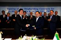 현대중공업그룹이 대규모 선박 수주에 성공했다. 대형 컨테이너선 및 PC선 10척과 특수선 2척 등 총 12척, 13억 달러 규모의 선박을 수주하며 올해 수주 목표에 성큼 다가섰다. 현대중공업그룹은 지난 9일 서울 계동 현대빌딩에서 이란 소재 선사인 이리슬(I