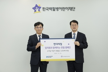 현대제철이 연말을 맞아 한국백혈병어린이재단에 임직원 헌혈증 1004장을 기부하는 이웃사랑을 실천했다.31일 현대제철은 지난 24일 서울 성북구에 위치한 한국백혈병어린이재단 서울나음소아암센터 4층에서 헌혈증 1004장의 전달식을 가졌다고 밝혔다.헌혈증은 현대제철 임직원들