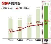 SM그룹 해운 부문 계열사 대한해운은 올해 3분기 연결기준 영업이익이 작년 동기 대비 43% 증가한 790억원을 기록했다고 15일 밝혔다.같은기간 매출은 42% 늘어난 4404억원이다.3분기까지 대한해운의 누적 영업이익은 2213억원으로, 지난해 전체 영업이익