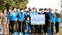CJ대한통운이 나무심기 사회공헌활동으로 성산동 매봉산자락을 푸르게 가꿨다.CJ대한통운은 지난 29일 서울시, 마포구, 서울 그린트러스트와 함께 'CJ대한통운 90주년 기념 도시숲 조성' 행사를 진행했다고 30일 밝혔다. 마포구 성산동에서 진행된 이번 행사는 코