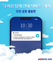 대한항공이 다음달 1일부터 인천공항 국제선 출발편 탑승객에게 ‘수하물 탑재 안내 서비스'를 제공한다고 29일 밝혔다.안내 서비스는 대한항공 모바일 앱을 통해 제공한다. 모바일 앱은 각 승객에게 본인의 위탁 수하물이 잘 탑재됐는지를 안내한다. 서비스는 탑승 수속 시 전송