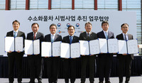 CJ대한통운이 미세먼지 저감에 동참하기 위해 수소화물차 시범사업을 진행한다.CJ대한통운은 20일 자사 옥천허브터미널에서 ‘수소 화물차 보급 시범사업 업무협약’을 체결했다.이날 행사에는 환경부 홍정기 차관, 산업통상자원부 정승일 차관, 국토교통부 손명수 제2차관, CJ대