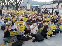 진에어 직원모임이 35도를 웃도는 폭염에도 생존권을 지키기 위해 광화문 광장에 모였다. 국토부가 진에어 면허 취소를 검토하고 있는 가운데 창립 10년만에 직원들이 집회를 처음 개최한 것.‘진에어 면허 취소 반대를 위한 직원모임’은 25일 오후 7시 정부서울청사