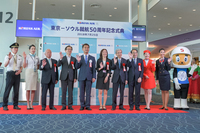 대한항공은 지난 25일 오전 도쿄 하네다 공항에서 서울~도쿄 노선 개설 50주년 기념식을 가졌다고 26일 밝혔다. 이날 행사에는 모리모토 소노코 일본국토교통성 도쿄공항사무소 공항장, 김정수 대한항공 일본지역본부장 등 관계자들이 참석했다.서울~도쿄 직항노선이 개설된 것은