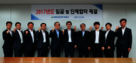 현대상선 노사가 회사 경쟁력 강화를 위해 한마음으로 뭉쳤다.현대상선은 해원노동조합(해상직원)이 '2017년도 정기 임금 및 단체협상(이하 임단협)'에서 임금 동결에 합의했다고 1일 밝혔다. 지난달 30일 열린 임단협에서 노사는 지난해에 이어 올해도 임금과 복