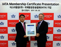 이스타항공은 국제항공운송협회(IATA) 공식 가입 절차를 마무리하고 정회원 자격을 획득했다고 6일 밝혔다.앞서 이스타항공은 지난 7월24일 IATA 최종 가입을 완료한 바 있다. 이후 지난 5일 오전 이스타항공 및 IATA 관계자가 참석한 가운데 증서