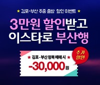 이스타항공, 김포~부산 노선 할인 이벤트... 최대 3만원 혜택
