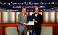 대한항공이 미국 보잉과 손을 잡고 무인헬기 개발에 적극 나선다. 대한항공은 지난 21일 서울 강서구 공항동 대한항공 본사에서 조양호 한진그룹 회장, 데니스 뮐렌버그(Dennis Muilenburg) 보잉 회장 등 양사 관계자들이 참석한 가운데 '50