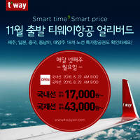 "미리 싸게 사세요" 티웨이항공… 11월 특가, 제주 1만7000원 등