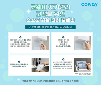 “손쉬운 정수기 청결 관리법 알려드려요” … 코웨이, ‘스스로 위생 관리 캠페인’ 전개
