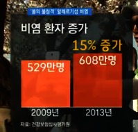 따사로운 봄과 함께 알레르기성 비염환자가 늘고 있다.실제 건강보험심사평가원에 따르면 2009년~2013년 사이에 알레르기성 비염 환자가 529만명에서 608만명으로 증가한 것으로 집계됐다.3월에 황사 및 미세먼지 꽃가루 등으로 오염된 공기가 콧속으