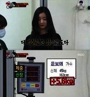 걸그룹 에이핑크의 멤버 윤보미(22)의 키와 몸무게가 강제 공개됐다.지난 25일 오후 방송된 MBC 예능프로그램 '일밤-진짜 사나이'(이하 진짜 사나이) 여군특집2에서는 멤버들의 체력검사가 진행돼 눈길을 끌었다.이날 참가자 윤보미는 체중계 위에 올라섰고, 키 163cm