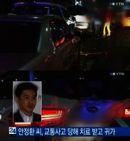 MBC 축구 해설위원 안정환(38)이 귀갓길에 교통사고를 당한 가운데 당시 사고 현장이 공개됐다.지난 13일 오후 9시쯤 서울 동작구 서울지방병무청 인근에서 김모(59)씨가 몰던 렉서스 승용차가 안정환이 탄 카니발 차량을 들이받으면서 4중 추돌 사고가 났다.이 사고로