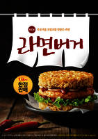 롯데리아가 6일부터 국민 간식 라면을 햄버거로 형상화한 메뉴인 '라면 버거'를 전국 롯데리아 매장에서 50만개 한정 판매한다. 롯데리아 라면버거는 삶은 라면을 구워 부드러운 식감을 강조한 제품으로 라면 특유의 맵고얼큰한 맛을 나타내기 위해 할라페뇨 소스를 토핑