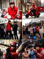 배우 이광수의 남녀불문한 '매너다리' 모습이 포착됐다. 한국 피자헛은 6일 이광수와 함께한 2015년 새해 첫 신제품 광고 촬영 현장 사진을 공개했다. 이광수는 지난 12월 경기도 파주에서 진행된 피자헛 광고 촬영에서 더 맛있는 피자를 원하는 사람들에게 추격