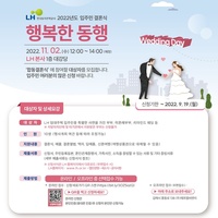 한국토지주택공사(LH)는 9월19일까지 임대주택 입주민에게 결혼식을 지원하는 '행복한 동행'의 신청을 받는다고 17일 밝혔다.행복한 동행은 경제적 사정 등으로 혼례를 치르지 못한 부부의 결혼식을 지원하는 LH 사회공헌 사업이다. 2004년부터 지금까지 258쌍의 결혼식