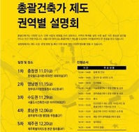 국가건축정책위원회와 국토교통부가 다음달 1일 충청권(대전)을 시작으로 지역 공공건축 혁신을 유도하기 위해 총괄건축가 제도에 대한 설명회를 개최한다고 28일 밝혔다.이후 다음달 15일 영남권(대구), 29일 수도권(서울), 12월 6일 호남권(광주),