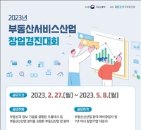한국부동산원은 부동산서비스산업을 선도할 유망 새싹기업을 발굴하고 청년창업인의 도전과 정착을 지원하고자 '2023년 부동산서비스산업 창업경진대회'를 연다고 4일 밝혔다.공모주제는 부동산과 정보통신기술(ICT)을 결합한 프롭테크부문을 포함해 부동산사업과 관련된 모든분야를