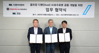 HL D&I한라는 지난 6일 서울 송파구 본사에서 자율주행 제어·센서 기술을 보유한 HL만도, AI로봇 전문기업인 대동로보틱스와 '디봇 보수로봇 개발 추진을 위한 양해각서(MOU)'를 체결했다고 7일 밝혔다.이번에 3사가 새롭게 개발에 나서는 디봇(잔디 손상자국