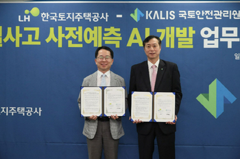 한국토지주택공사(LH)는 국토안전관리원(KALIS)과 건설사고를 사전에 예측해 대비할 수 있는 '건설사고 예측 AI' 개발을 추진한다.LH는 경남 진주시 LH 본사에서 국토안전관리원과 업무협약을 체결했다고 27일 밝혔다. 협약식에는 이상조 LH 스마트건설안전본부장과 김