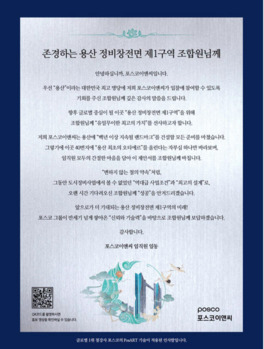 포스코이앤씨는 '용산정비창 전면 제1구역 재개발정비사업(이하 용산정비창 1구역)' 수주에 강한 의지를 드러내며 조합원에게 최고의 가치를 선사하겠다고 25일 밝혔다.포스코이앤씨는 조합원에게 보내는 인사말을 통해 "대한민국 최고의 명당인 용산에 입찰할 수 있는 기회를 주신