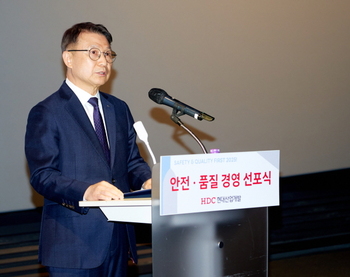 HDC현대산업개발은 27일 안전·품질 경영선포식을 열고 안전과 품질을 최우선 가치로 여기는 기업문화 확산을 약속했다고 밝혔다.행사에는 정경구 대표이사, 조태제 CSO(최고전략책임자) 등 경영진을 비롯한 현장소장, 임직원, 협력업체 대표 등 총 190여 명이 참석했다.H
