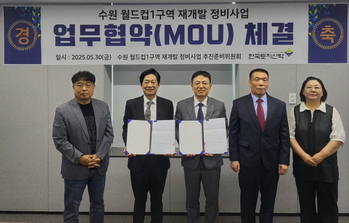 한국토지신탁은 수원 월드컵1구역 주택재개발정비사업 추진준비위원회(재준위)와 신탁방식 정비사업 추진을 위한 업무협약(MOU)을 체결했다고 2일 밝혔다.재준위는 최근 공개경쟁입찰을 통해 한국토지신탁을 예비신탁사로 선정했으며 지난달 30일 최종적으로 협약을 맺었다.이 사업은
