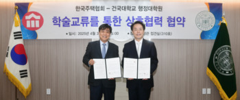 한국주택협회와 건국대학교 행정대학원은 주택건설산업 발전과 성장을 위해 상호 업무협약을 체결했다고 4일 밝혔다.두 기관은 △주택산업의 건전한 발전을 위한 인적·물적자원 공유 및 학술교류 △한국주택협회 및 회원사 임직원 대상 수업료 30% 장학금 지원 △주택산업의 지속가능