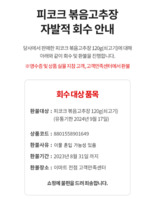 이마트가 ‘피코크 쇠고기 볶음 고추장’ 일부 상품에 대한 자발적 회수에 나선다고 4일 밝혔다.이번 회수는 ‘피코크 쇠고기 볶음 고추장’에 이물질이 발생함에 따라 제조사인 ㈜움트리가 식품의약품안전처에 자진 신고 후 회수를 진행하는 것이다.회수 대상은 2023년 3월 30
