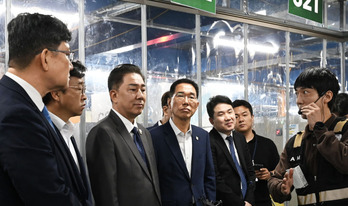 민주당 김병기 원내대표 쿠팡로지스틱스서비스 방문 … "모범적인 사례" 차폐식 대형 냉방구역 시찰
